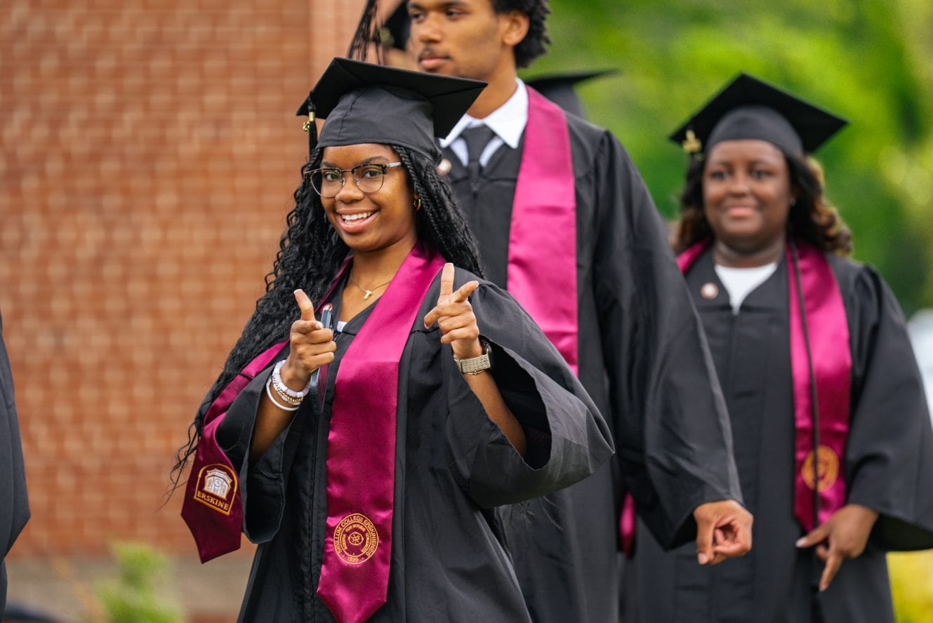 Since its founding in 1839, Erskine has been known for excellence and community. With a student-to-faculty ratio of 15:1, students enjoy a highly personalized experience with professors who are invested in their success. Because the college is intentionally small, students also build close friendships with one another that go beyond the classroom and dorm room, often lasting a lifetime.