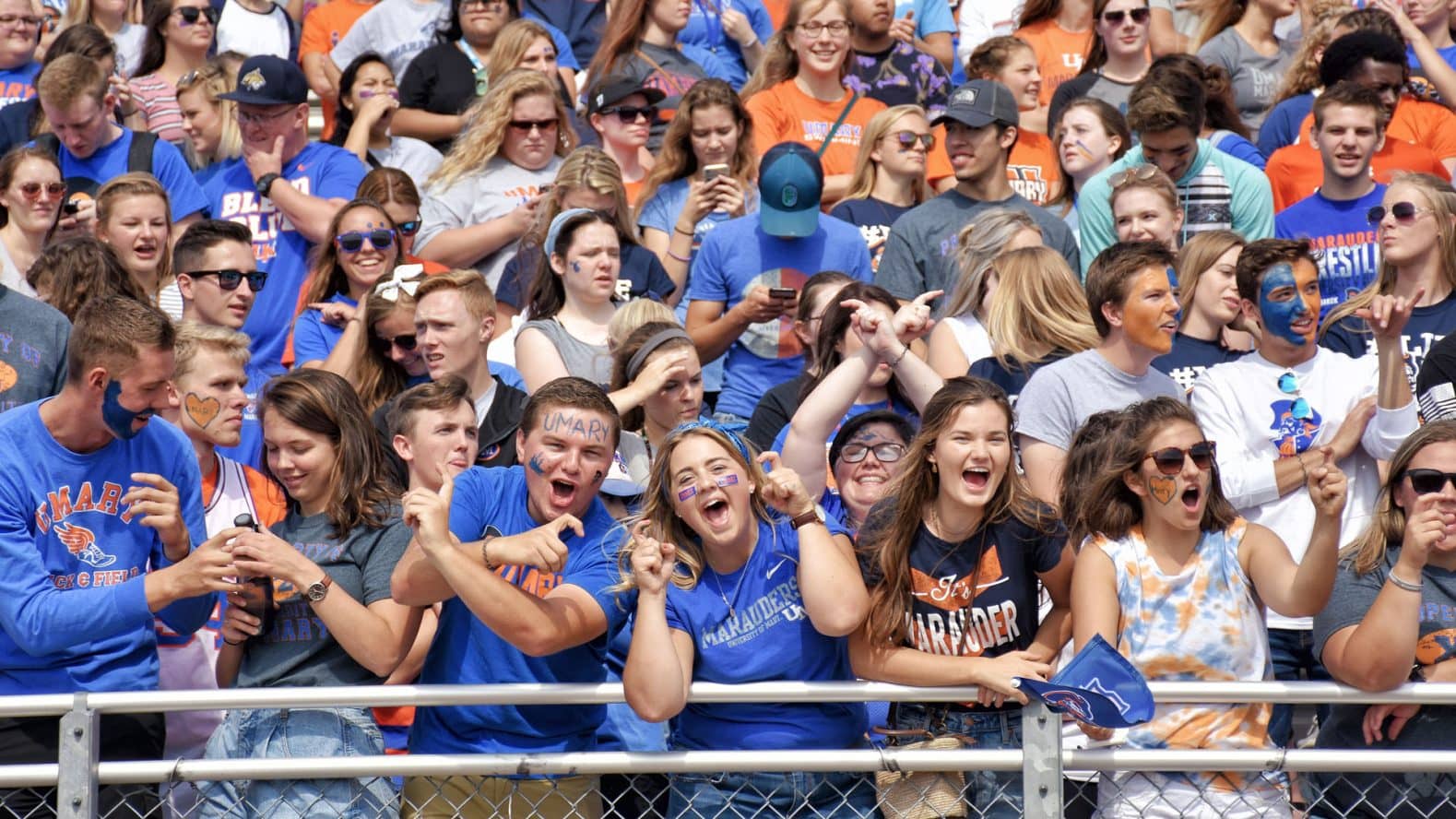 The university’s mascot is the Marauders, and its school colors are blue and orange.